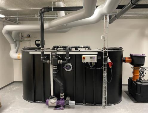 Til Hotellet skulle der bruges to fuldautomatiske fedtudskillere (en NS 2 og en NS 15) samt en Aqualift F XL pumpestation. De fuldautomatiske fedtudskillere mixer og makulerer indholdet i fedtudskilleren automatisk til slamsugeren, de rengør automatisk udskillertanken med varmt vand og endelig genfylder de automatisk udskilleren med koldt vand. Til denne løsning valgte man at sætte en Aqualift F XL i forlængelse af udskillerne, da vandet ikke kunne løbe selv til hovedkloakken. Herved sikrer man også driften ved eksempelvis opstuvning. Alternativt kan der anvendes en Ecolift XL Hybrid bypass pumpestation i applikationer, hvor vandet kan løbe selv. Det kan du se mere om her.