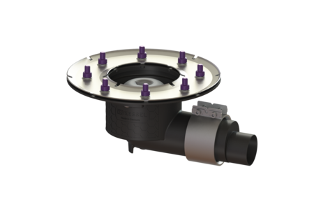 Grunddelen Ecoguss er designet til punktafløb i kombination med et påbygningsstykke og inkluderer en aftagelig lugtspærre samt en byggepladsbeskyttelsesdæksel. Det genanvendelige kompositmateriale Ecoguss opfylder de højeste krav til lydisolering, er modstandsdygtigt over for aggressive medier, temperaturbestandigt og har en permanent korrosionsfri overflade. Det kan kortvarigt udsættes for flammer ved temperaturer fra 100 til 400 grader Celsius. Den rustfri stålklæbeflange med bolte og skruer er beregnet til fastklemning eller svejsning af bitumen- og polymerbitumenmembraner samt plast- og elastomermembraner. Kun af producenten testede tætningsmembraner må anvendes til vandtætte forseglinger.