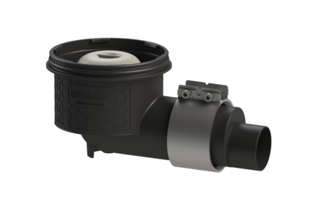 Grunddelen Ecoguss DN 50 med sideudløb anvendes sammen med et påsat stykke til punktafvanding og er udstyret med en aftagelig lugtspærre samt en byggesikring. Det genanvendelige kompositmateriale Ecoguss opfylder de højeste krav til lydisolering, er modstandsdygtigt over for aggressive medier, temperaturbestandigt og har en permanent korrosionsfri overflade. Det kan kortvarigt udsættes for flammer ved temperaturer fra 100 til 400 grader Celsius. Pressetætningsflangen med bolte og skruer i rustfrit stål anvendes til fastklemning eller svejsning af bitumen- og polymerbitumenmembraner samt plast- og elastomermembraner. Kun af producenten testede tætningsmembraner må anvendes til vandtætte forseglinger.