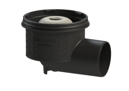 Grunddelen Ecoguss DN 80 med sideudløb anvendes til punktafløb i kombination med et påbygningsstykke. Den er udstyret med en aftagelig lugtspærre og en byggepladsbeskyttelsesdæksel. Det genanvendelige kompositmateriale Ecoguss opfylder de højeste krav til lydisolering, er resistent over for aggressive medier, temperaturbestandigt og har en permanent korrosionsfri overflade. Den kan kortvarigt modstå temperaturer fra 100 til 400 grader Celsius. En presflange med bolte og skruer af rustfrit stål muliggør fastklemning eller svejsning af bitumen- og polymerbitumenbaner samt plast- og elastomertætningsbaner. Kun tætningsbaner testet af producenten må anvendes til vandtætte forseglinger.