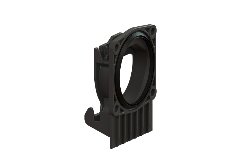 Adapteren er fremstillet i slagfast plast (sort) og er designet til hurtig og sikker montering uden behov for specialværktøj.