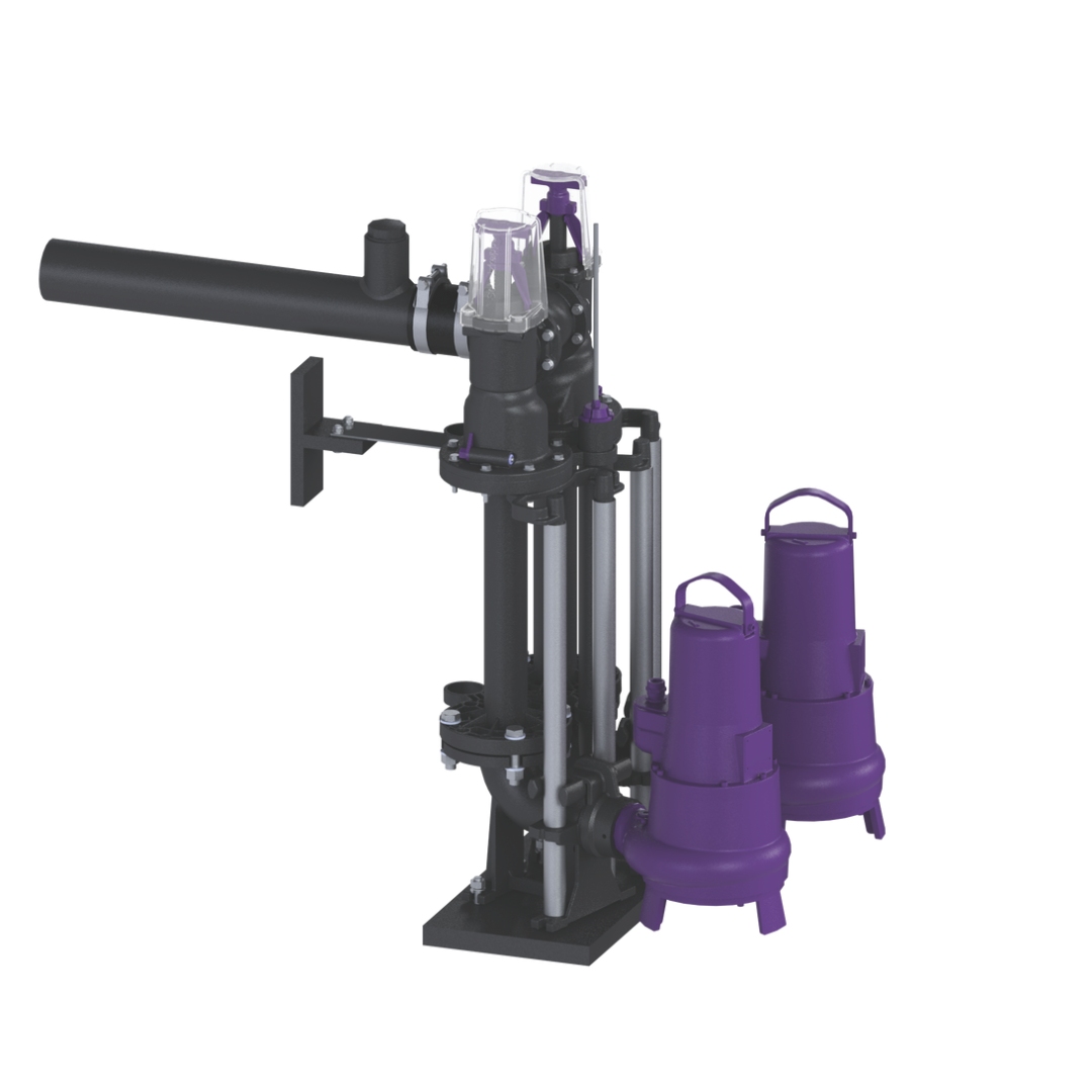 Aquapump Retrofit Duo, der er udstyret med to GTK 1300-pumper, tilbyder en robust og velafprøvet løsning for håndtering af spildevand, både med og uden fækalier, i ikke-ATEX-klassificerede miljøer. Systemet er udviklet til fleksibel eftermontering i eksisterende kamre med en minimumsdiameter på 1000 mm og leveres som en komplet, modulopbygget enhed klar til våd installation.