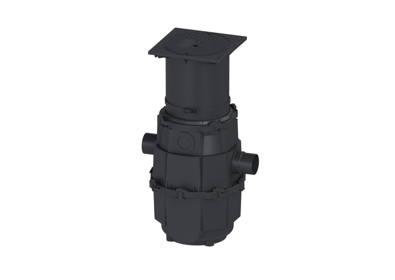 Enheden er udstyret med et aftageligt sedimentkar i rustfrit stål med 5 mm huldiameter, og udløbet er forsynet med integreret lugtfælde. Rengøring og vedligehold udføres nemt via serviceåbningen i dækslet.