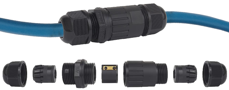 Hermetisk lukket samlemuffe til samling af kabler. Sikrer mod indtrængen af fugt.